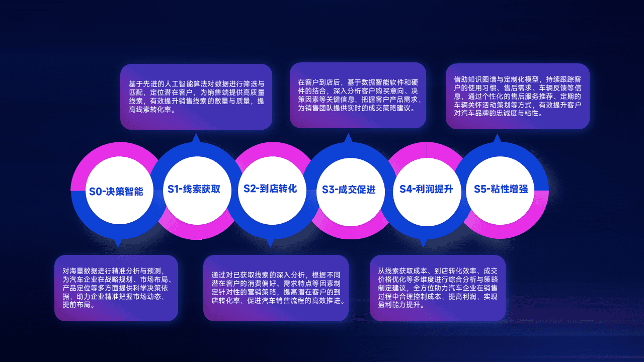 通过拓宽潜在客户来源、、优化线索分配并提高到店转化率,,,以增强销售效率。。。同时,,利用线索数据不断优化分析模型,,有效提升转化率,,扩大营销影响力。。。。
